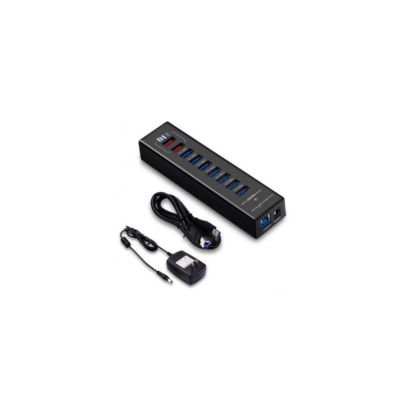 Color: Negro, Material: Aluminio, Tamaño: 15.4 * 3.8 * 2.4cm-- Ultra Rápido: La transferencia de datos de hasta 5Gbps en 7 puertos te sincroniza y en tu camino.-- Tecnología PowerIQ exclusiva: 2 puertos PowerIQ detectan que su dispositivo ofrece la carga más rápida posible de hasta 2.1 amperios por puerto, mientras que los 7 puertos